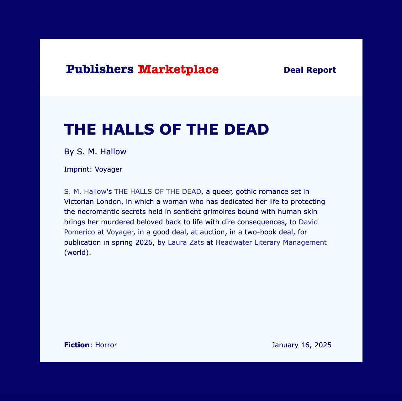 THE HALLS OF THE DEAD will release summer 2026. For more frequent teasers, follow me on Instagram. For now? Enjoy this book trailer made by my friend, the incredible Izzy Singer: